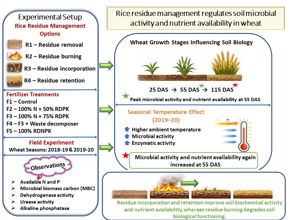 Temperature-mediated soil microbial activity and nutrient availability in wheat under different rice residue management strategies